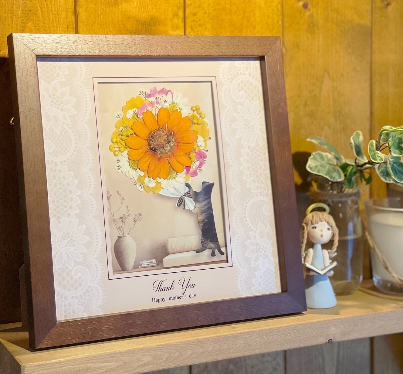 【お祝い】花束を持った猫の押し花アートフレーム_15